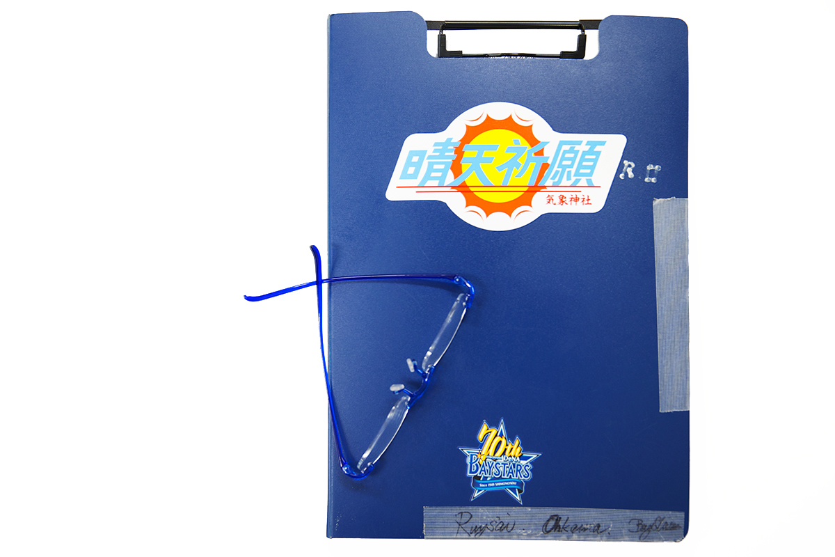 そして「晴天祈願」のお守りステッカーが貼られたバインダーを持って、