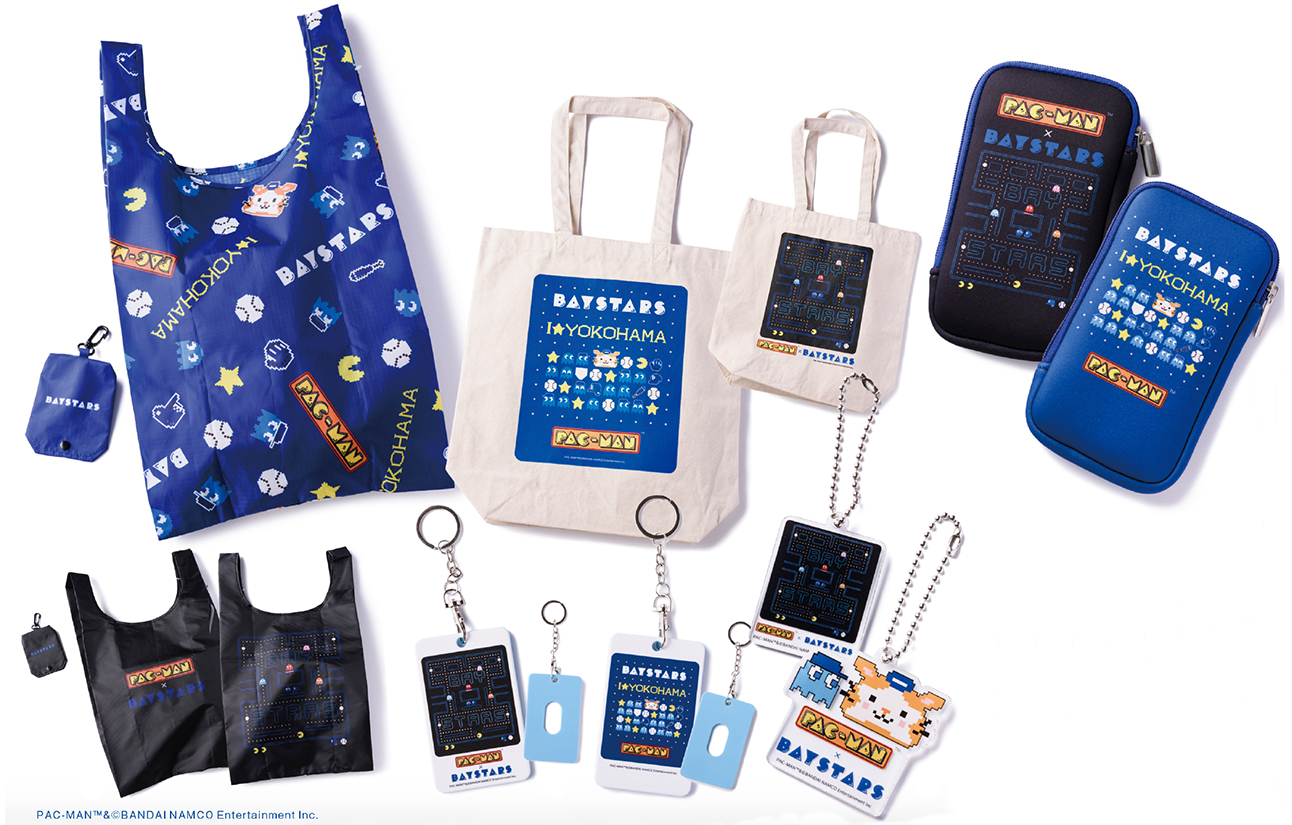 世界中で愛され続けること40年以上!ニューヨーク近代美術館(MoMA)の常設展示コレクションにもなっている「食べて、逃げて、逆転する」ゲーム、パックマンがトートバッグやポーチ、カードケースなどのベイスターズグッズとなって降臨。お馴染みのゲーム画面、ゴーストと並ぶDB.スターマン、ボールなどの入ったオリジナル柄もご用意!