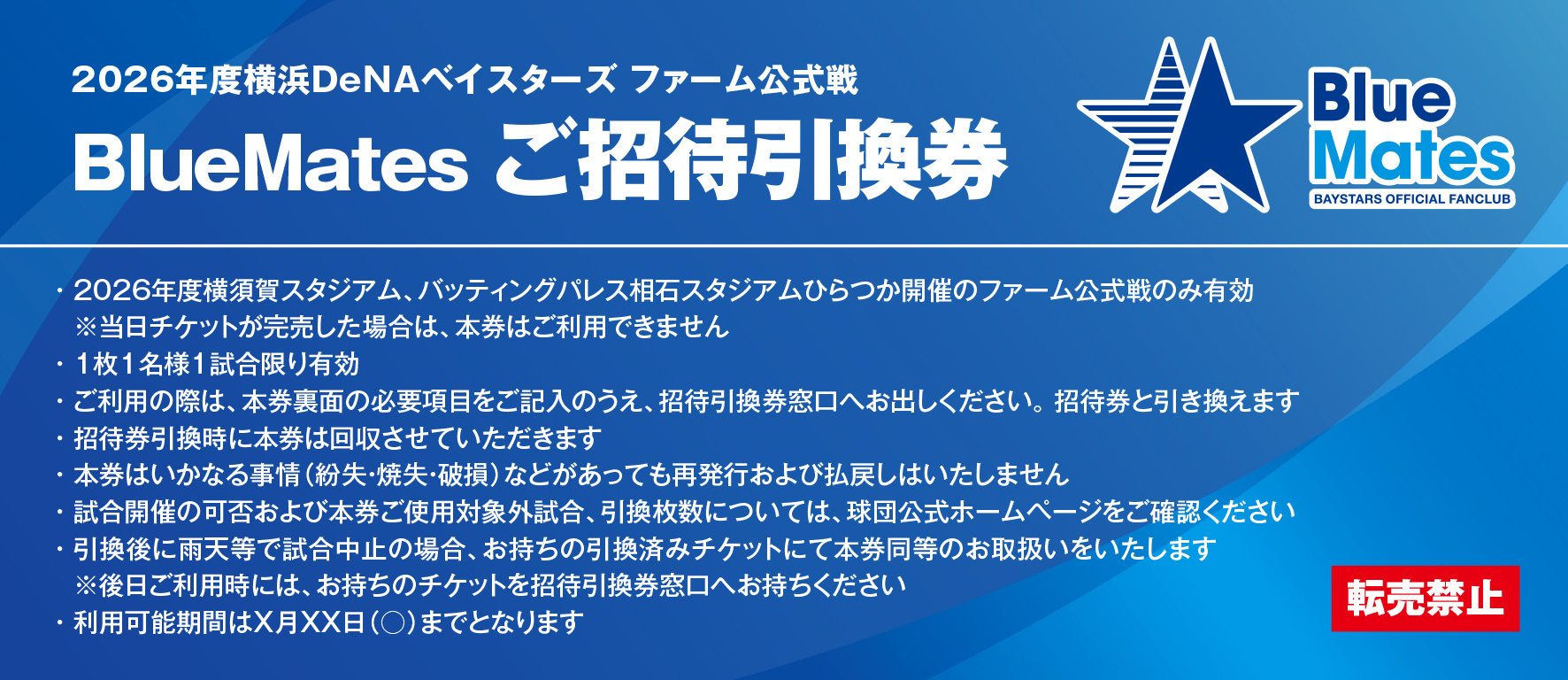 ファームゲームでも、BlueMatesメンバー限定の特典がいっぱい!一軍を目指しながら戦い抜く若き星たちへ熱いご声援を!