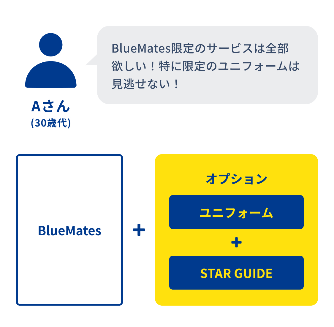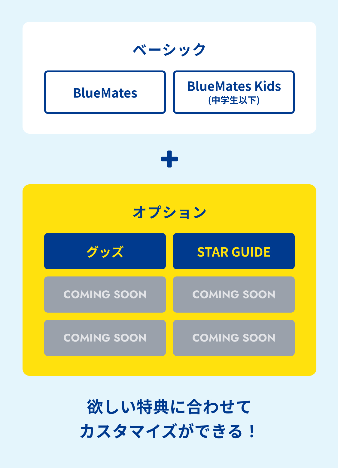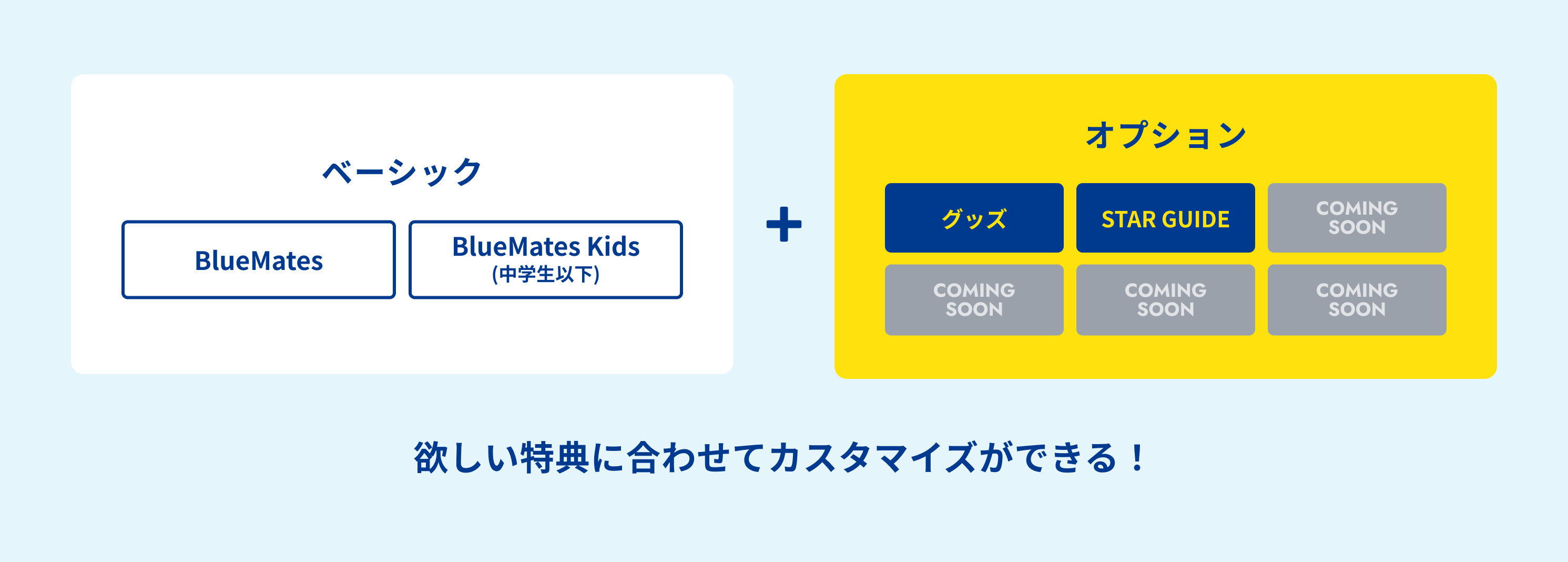 BlueMatesメンバー限定グッズやさまざまな追加サービスを選べます。