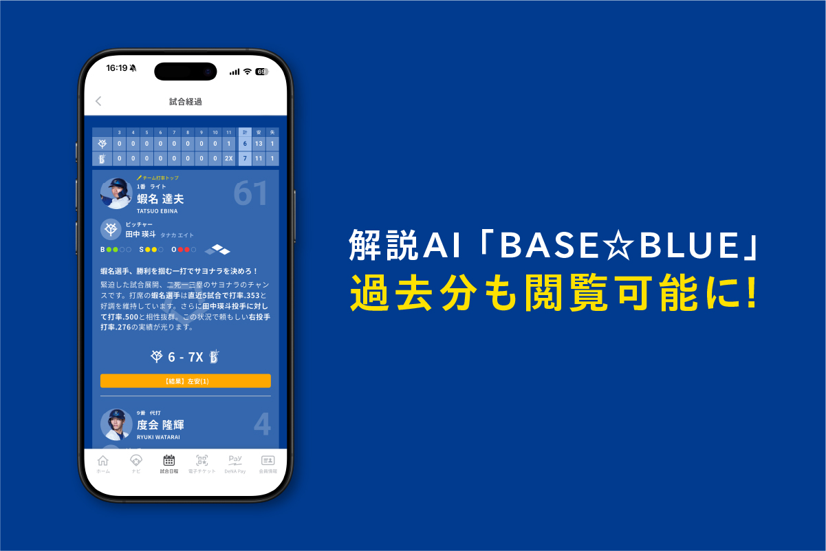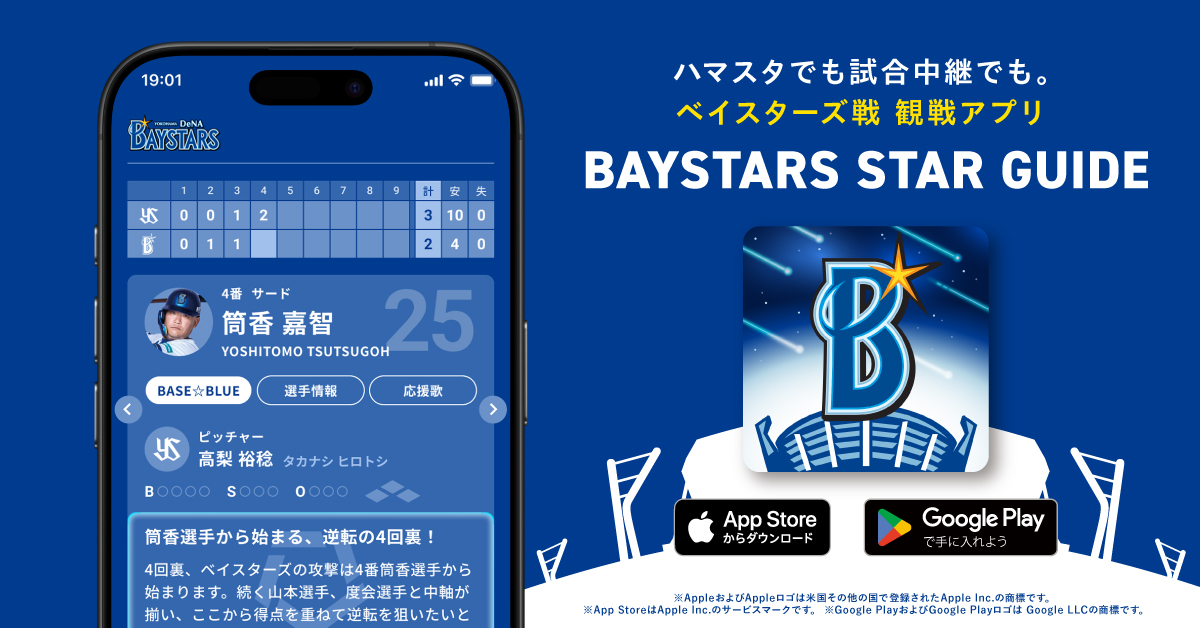 「BAYSTARS STAR GUIDE」は、横浜スタジアムや試合中継での観戦体験をより便利に、そして楽しくする公式アプリです。試合当日のイベント情報やスタジアムグルメ、電子チケットの表示・分配など観戦に欠かせない機能に加え、AIによるベイスターズ戦全打席の見どころ解説や選手情報のリアルタイム配信など、観戦をさらに深く楽しめるコンテンツを搭載。