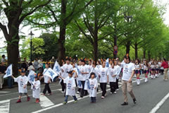 スターマンTシャツに、スターマンなりきりカチューシャで衣装はバッチリ! B☆SPIRIT会員のキッズフラッグ隊を先頭に、横浜DeNAベイスターズパレード部隊発進です!! |