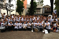 最後は西谷中学校の校長先生も一緒にみんなで記念撮影。全長 3.4㎞のパレード終了!お疲れ様でした☆ |