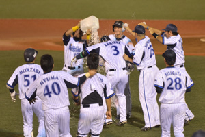 試合終了後、横浜DeNAベイスターズ・ファームチームの選手・首脳陣がグラウンドに整列し、山下大輔ファーム監督が今シーズンのファームチームにご声援をくださった皆様に御礼のご挨拶を行います。