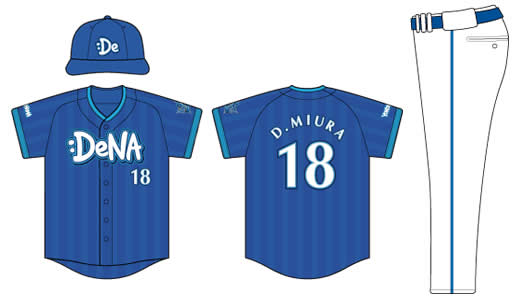 前面のデザインは、鮮やかなカラーを強調できるようによりシンプルなものとし、横にすると笑顔に見える「:D」を携え、デライト・マークと呼ばれる、株式会社ディー・エヌ・エーのロゴを配置。ファンの皆様に喜んでいただき、楽しんでいただき、そして笑顔になってもらえるように、球団、チーム一丸となって頑張りたいという気持ちを込めています。