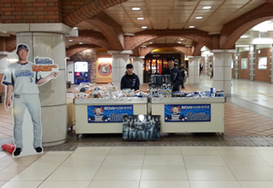4月より開始しました横浜高速鉄道みなとみらい線「日本大通り駅」三塔広場でのDeNAベイスターズグッズの販売が好評につき、5月、6月も継続いたします。