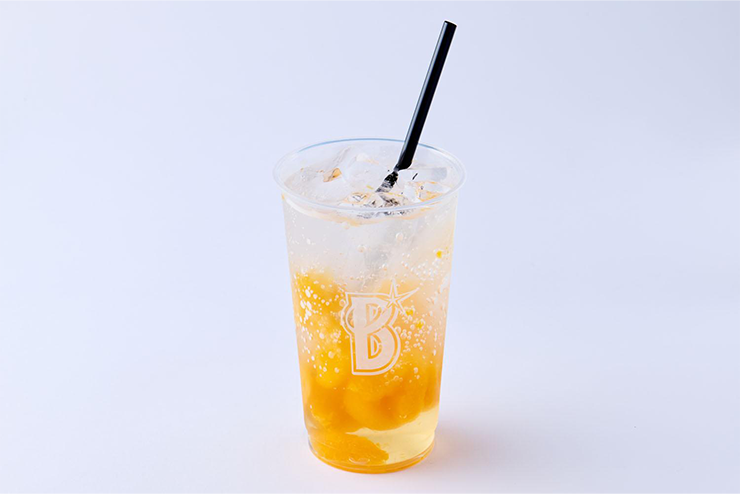 ハマスタの大定番!あのみかん氷が、ソフトドリンクになりました! ちょっぴり甘めのシロップの味わいはそのままに、みかん氷と同じく、たくさんのみかんをトッピング。みかんをつぶして飲むのがおすすめです! |