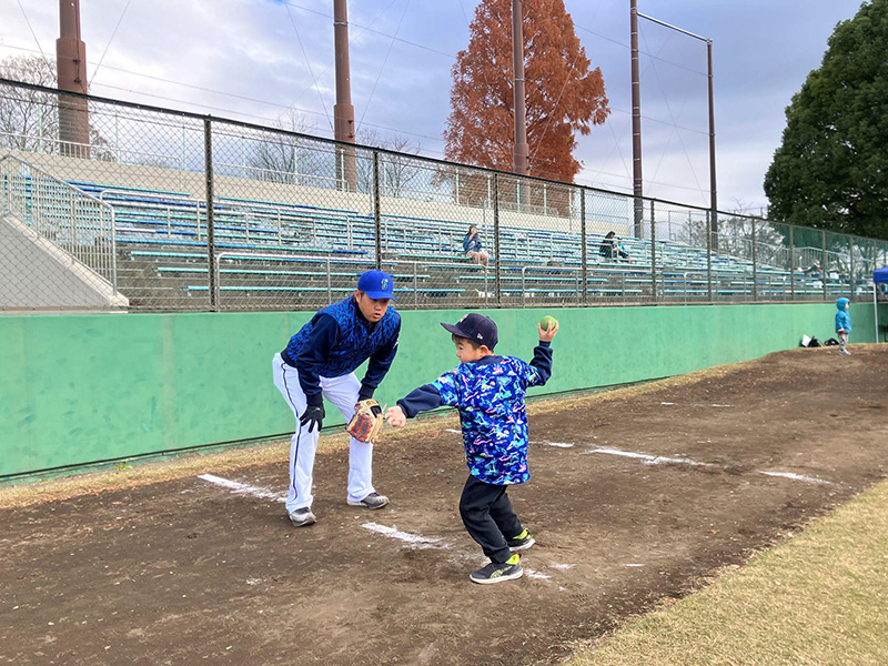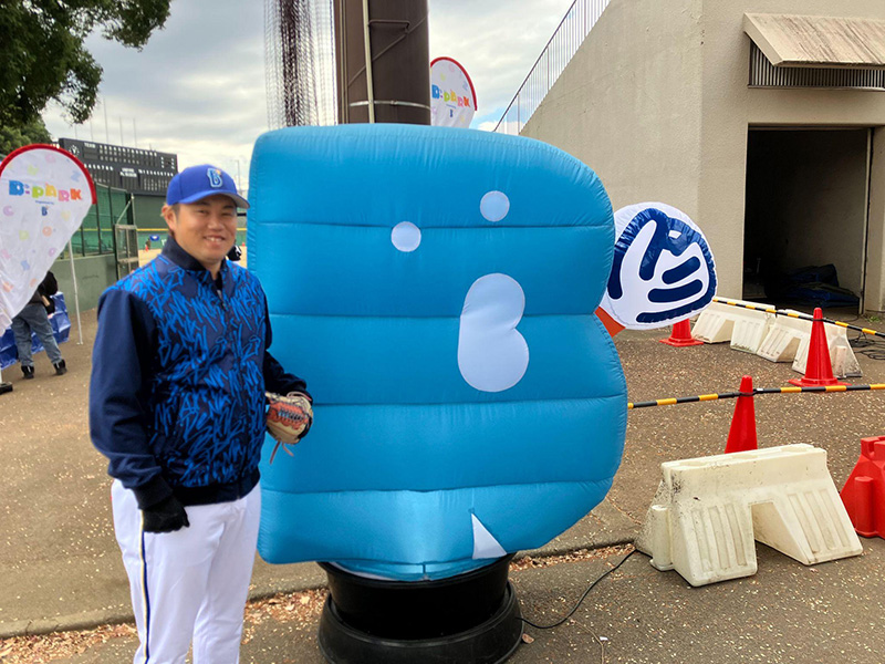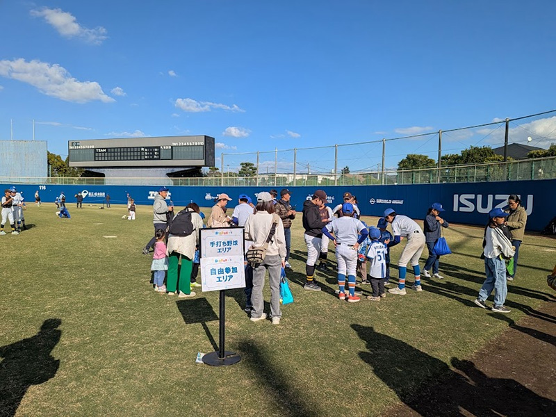 また、現在も横浜DeNAベイスターズで活躍中の堀岡隼人選手が地元「はだの」へサプライズ登場いただきました。堀岡選手も子どもたちとたくさんふれあっていました。