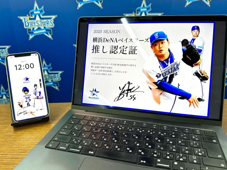 申込完了後、DeNAアカウントにご登録のメールアドレスに、『デジタル推し認定証』のダウンロードURLをお送りします。URLにアクセスし、お持ちのBAYSTARS IDによる認証を完了させ、コンテンツをダウンロードしてください。