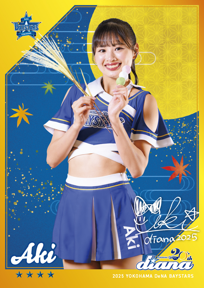 今回追加されるカードは、秋のお月見アイテムを持ってポーズを取る横浜DeNAベイスターズオフィシャルパフォーマンスチーム「diana」のメンバーたちのMOVIE付きカード全19種!