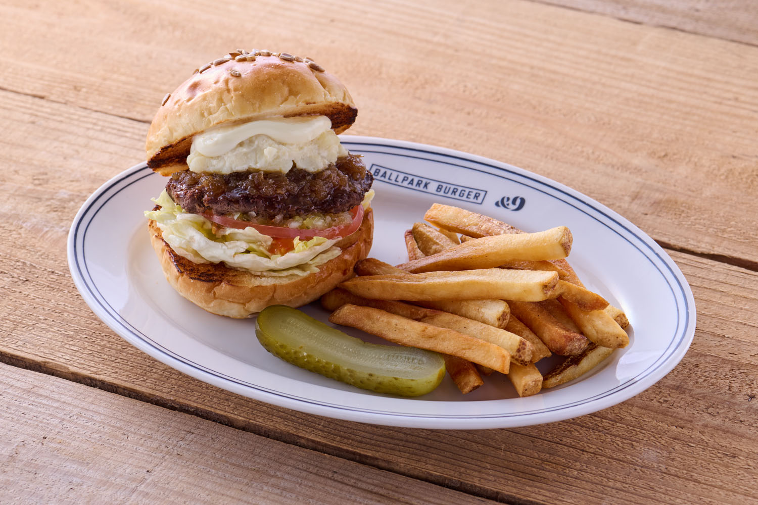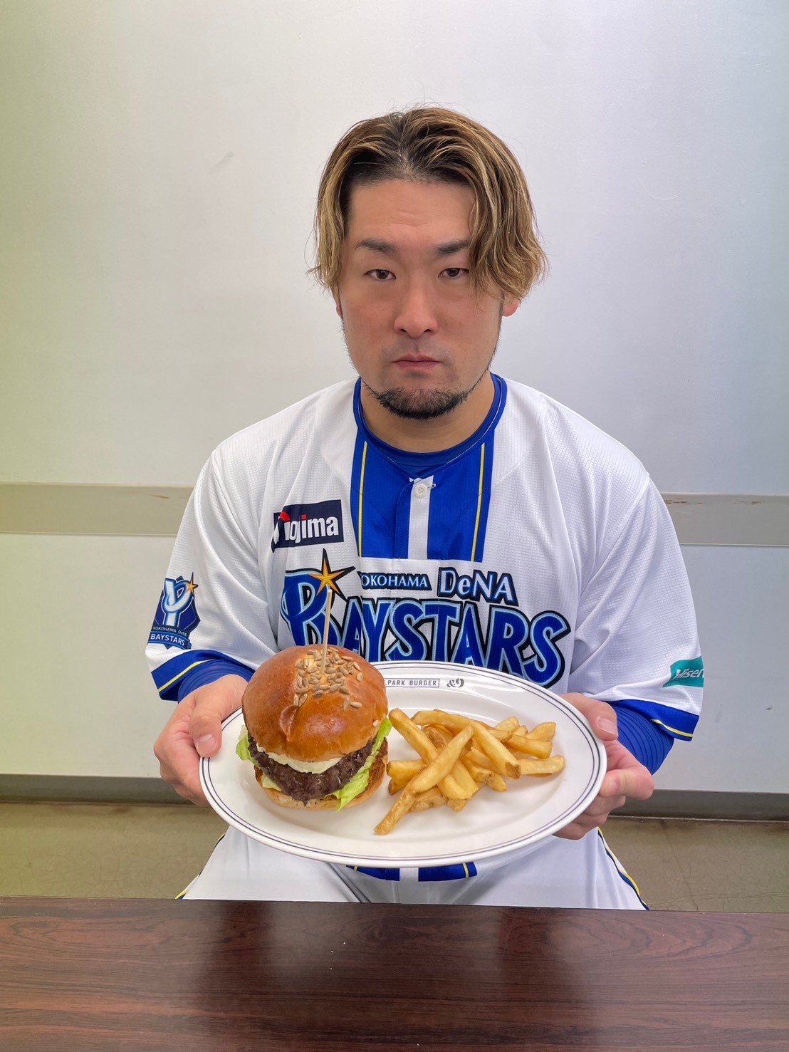甘みとコクが楽しめるシャリアピンソースに戸柱選手が好きなポテトサラダとクリームチーズを合わせたハンバーガー! 戸柱選手も豪快にかぶりつき「美味しい」と連呼した逸品。 ぜひ皆さまも豪快にかぶりついてみてください! |