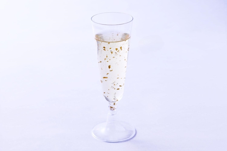 グラスの中で金箔がブチあがる華やかな1杯。 マスカットを思わせる爽やかな果実味が口の中に広がる、やや辛口のスパークリングワインです! |