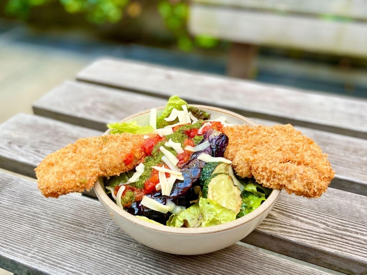 バンズからはみ出るでっかいカツが食欲をそそる見た目も楽しい逸品。 スパイシーな香りと肉汁、そしてカリカリした衣の食感のでっかい台湾風からあげを はさんだバーガー。 豪快にかぶりついて、ブチあがっていきましょう! |