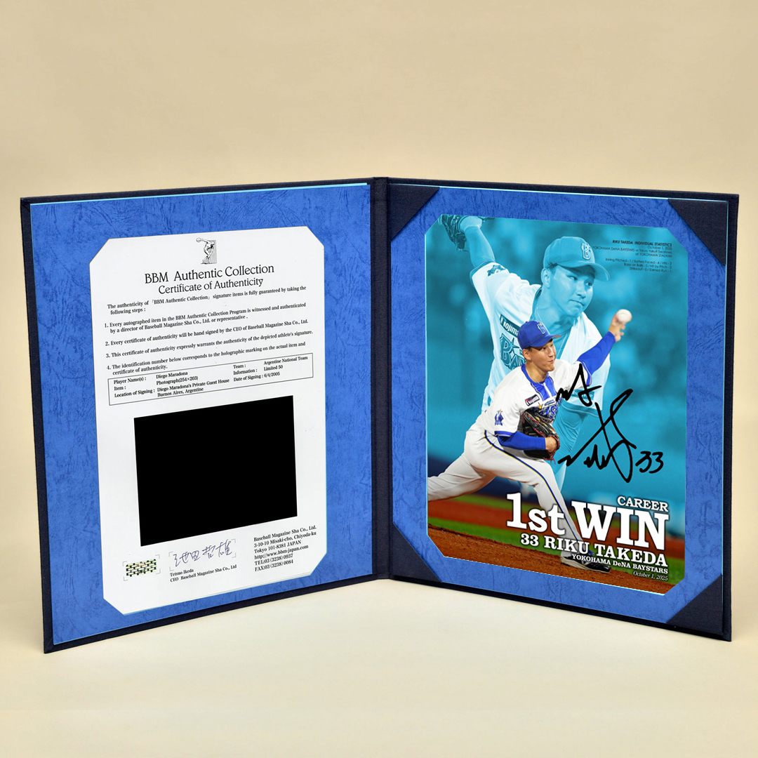 10月1日(水)東京ヤクルトスワローズ戦、横浜スタジアムにて武田選手がプロ入り初勝利を記録したことを記念し、当日の試合写真をコラージュしたデザインのフォトファイルと初勝利試合の成績を印したロゴボールに直筆サインを入れてお届けします。