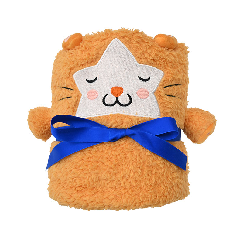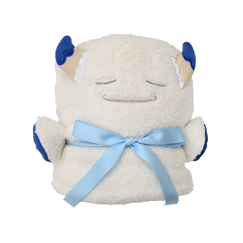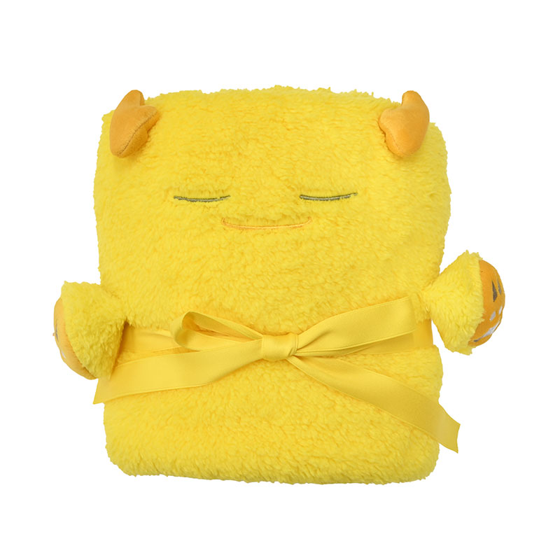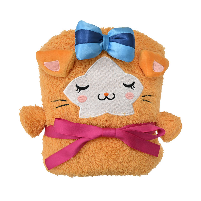 ブランケットは使わないときは可愛いぬいぐるみ型にくるっと変身!リボン付きでギフトにも最適です。