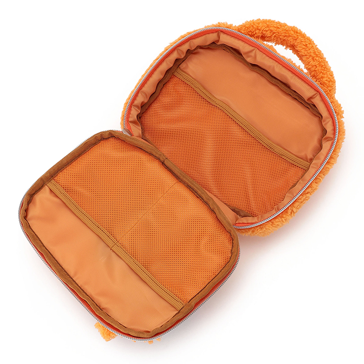 バッグの中にしまっても、ハンドルを持ってそのまま持ち歩いてもOK。内側には便利なメッシュポケット付きで、コスメや小物、ガジェット類もすっきり整理できます。