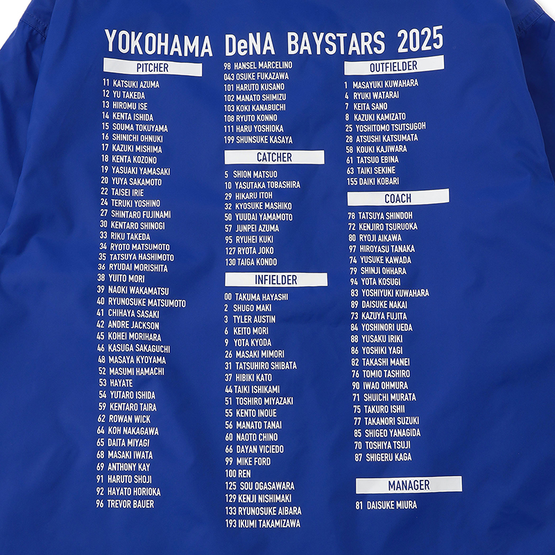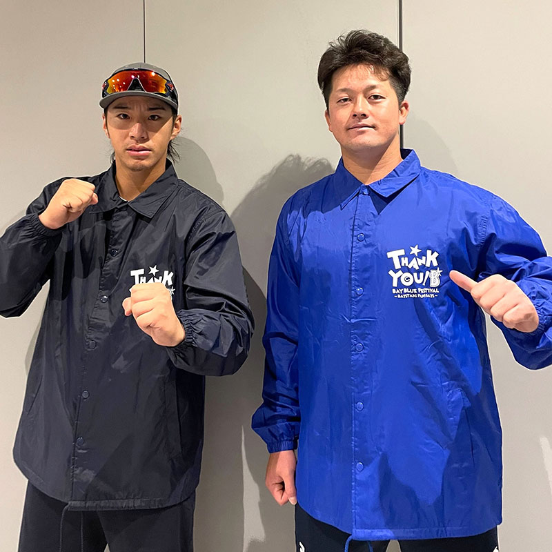 11月22日(土)・11月23日(祝・日)開催の『横浜DeNAベイスターズ BAY BLUE FESTIVAL ~ BAYSTARS FUN! DAYS ~ Supported by ありあけハーバー』の「チーム対抗バトルコンテンツ」で選手が着用する同デザインの「THANK YOUコーチジャケット」を数量限定で販売いたします!