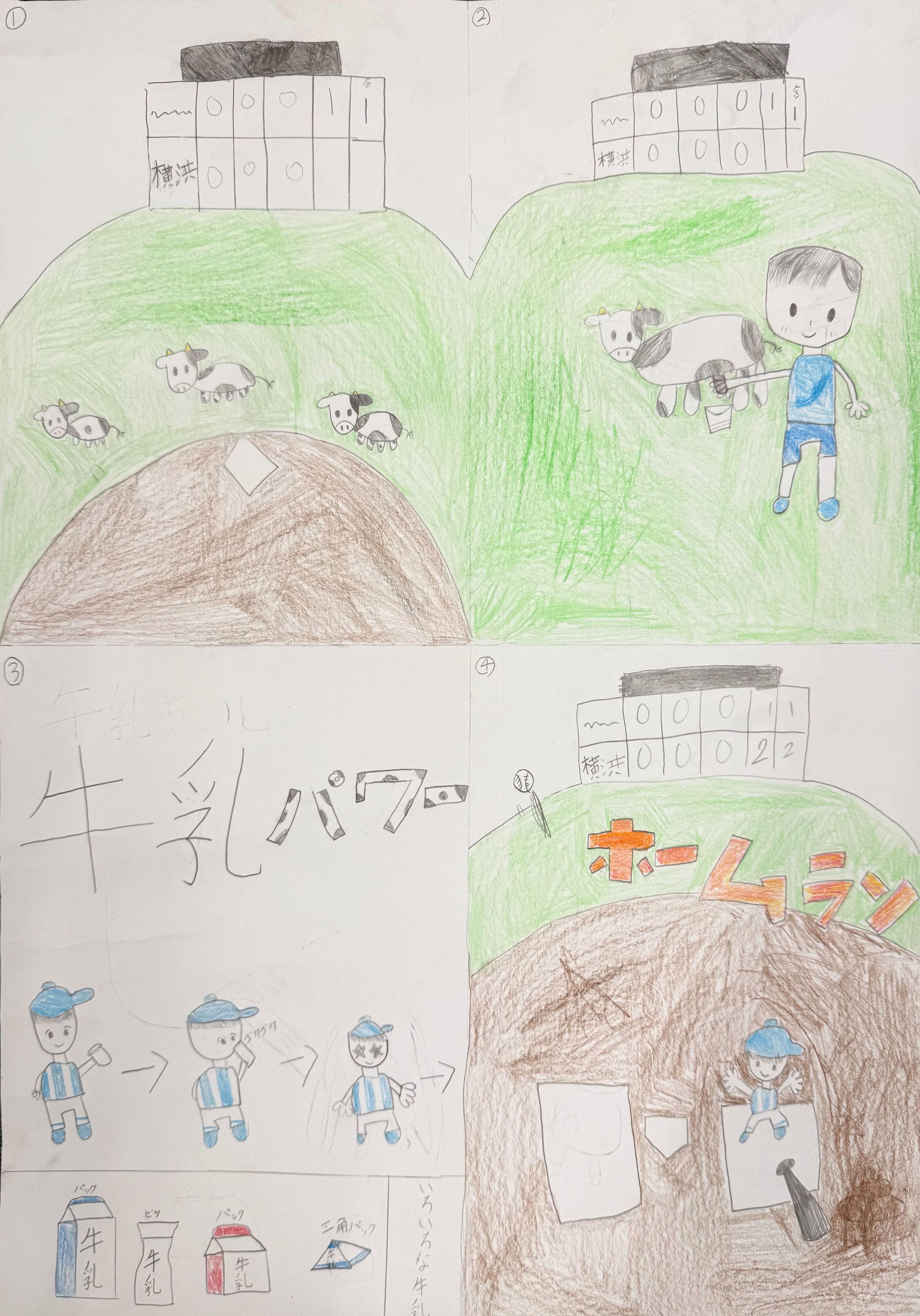 <審査員コメント> 我々では考えつかないアイデアがとても面白かったです。牛を放牧してその牛乳で栄養を取り、牛乳パワーで選手が逆転ホームランを打つというストーリーまで考えてくれていて凄いと思いました。見れば見るほど魅力的でした。 |