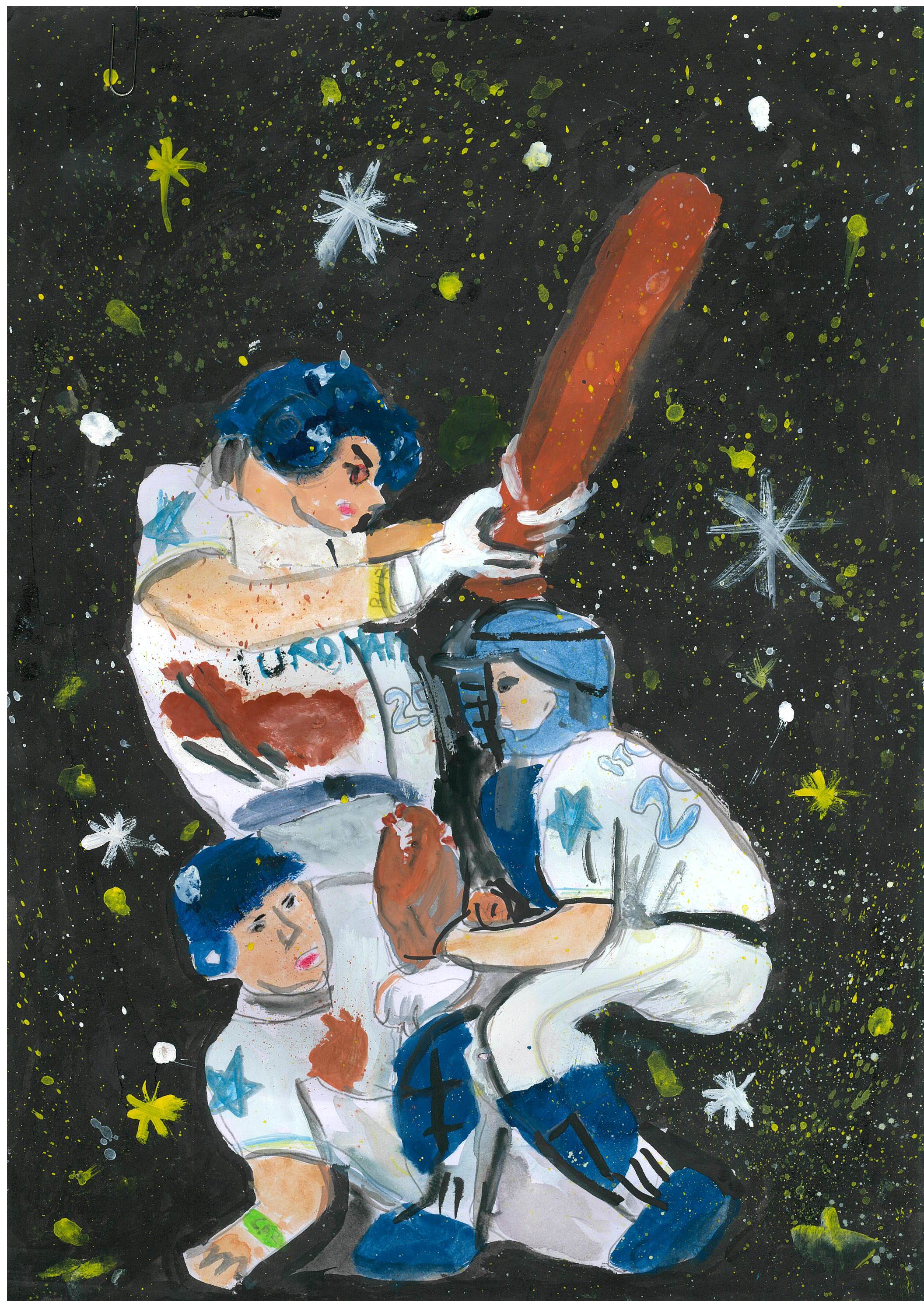 <審査員コメント> 絵がとっても上手で、プラネタリウムのキラキラした感じが伝わってきました。選手の動きもイキイキしていて、ドラマチックで素敵なスタジアムがイメージできました。 |