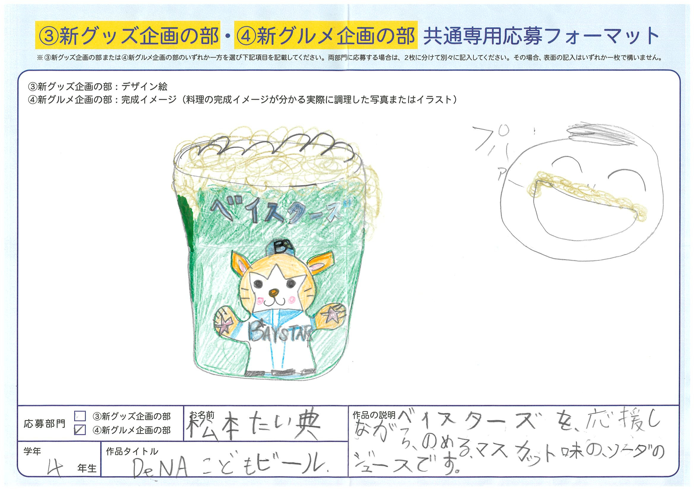 <審査員コメント> ベイスターズといえばビールという認識を大人だけでなく、こどもまで普及できる非常に良いアイディア。 |