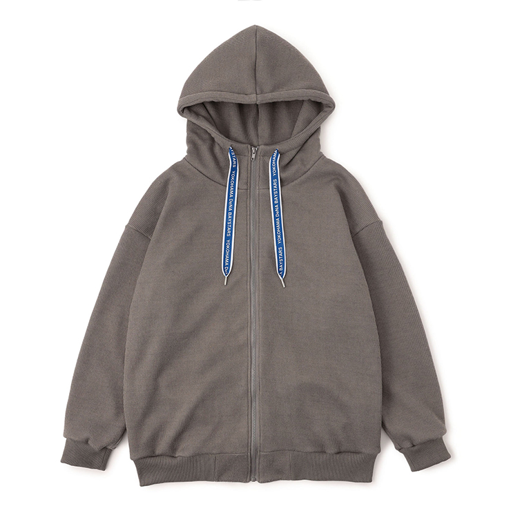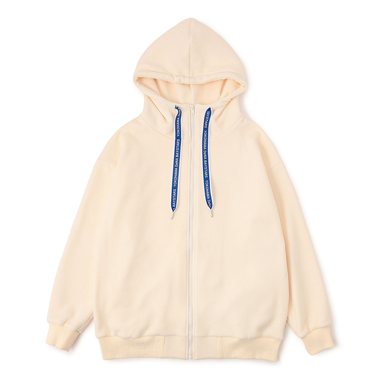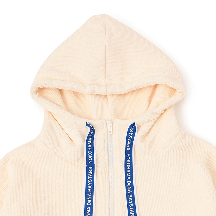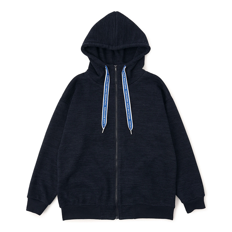 フードのドローコード(紐)にデザインされた「YOKOHAMA DeNA BAYSTARS」のロゴがポイントです。