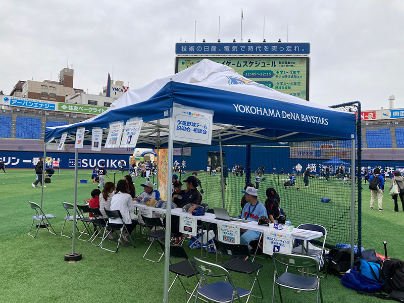 学童野球チームより説明会・相談会をグラウンド内で実施し、野球を始める入口として、対象チームに入部すると軟式用グラブをプレゼントします。