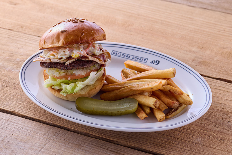 CRAFT BEER DINING &9では#50山本祐大選手プロデュースの「3種のチーズとチキンのピザ」、BALLPARK BURGER &9では、#11東克樹選手プロデュースの「トンテキバーガー」を発売いたします。