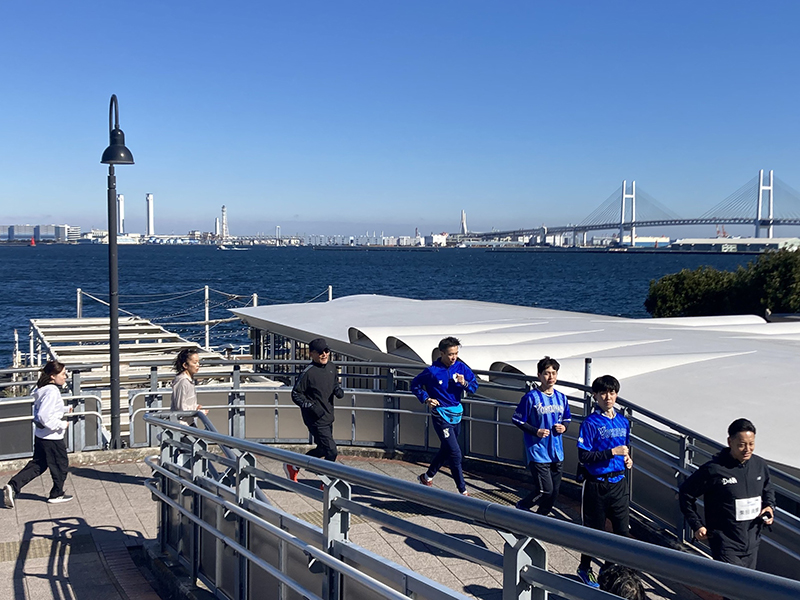 屋内練習場で体を動かした後は、ランニング初心者の方もランニングが得意な方も、走ることが好きなお子様も、特別ゲストと一緒に「楽しく」横浜の街を爽快にジョギングしましょう。