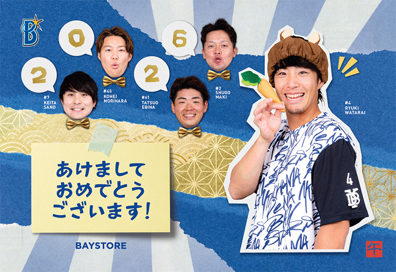期間中、BAYSTOREにて4,000円以上(税込み)ご購入毎に「選手デザインポストカード」をもらえるフェアを開催いたします。