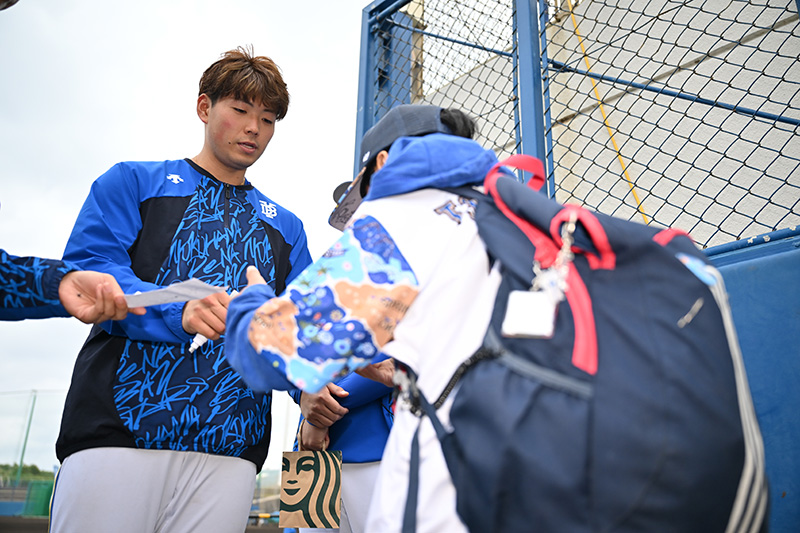 当日バッティング練習を終えた野手1名よりサインをプレゼント! ぜひ、サイン会参加券を手に入れて朝から練習見学を楽しもう! 定員:毎回25名(日によって変動する可能性がございます) 実施時刻:バッティング練習終了後(15:00以降)