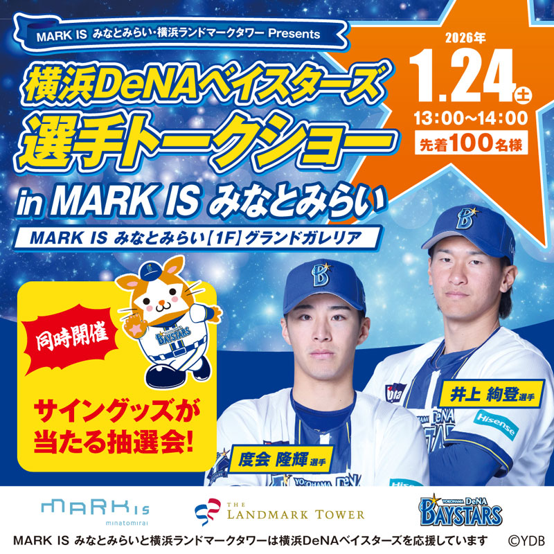 MARK IS みなとみらい・横浜ランドマークタワー Presents『横浜DeNAベイスターズ 選手トークショー in MARK IS みなとみらい』を1月24日(土)に開催します。