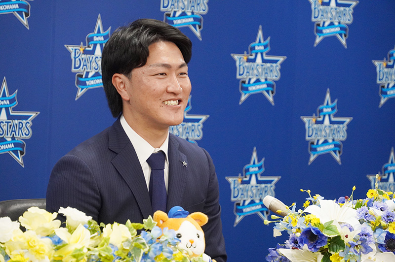 「昨日までは実感が湧いていませんでしたが、こうした会見の場に立ち、ようやく実感が湧いてきました。肩の強さには自信がありますし、投手の方々とコミュニケーションを取り、信頼を勝ち取ることが自分のスタイルです。