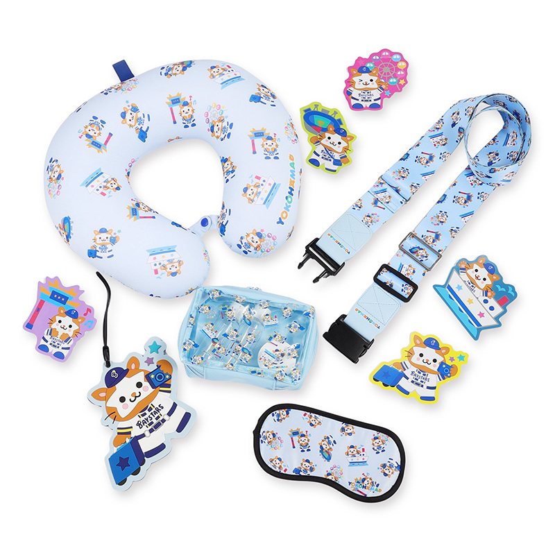 ネックピロー:4,000円(税込み) アイマスク:1,800円(税込み) トラベルセット:3,200円(税込み) スーツケースベルト:2,200円(税込み) ラゲッジタグ:1,800円(税込み) トラベルステッカー(各1枚):1,000円(税込み) |