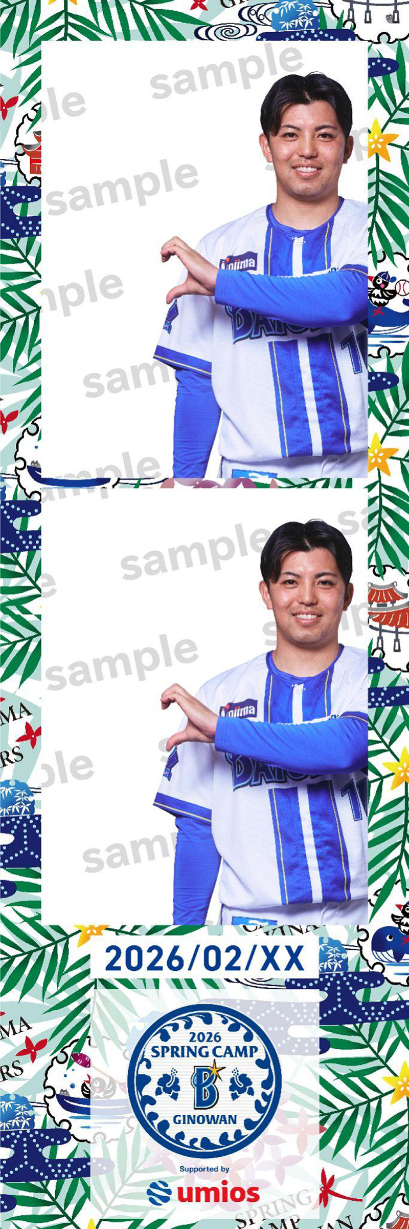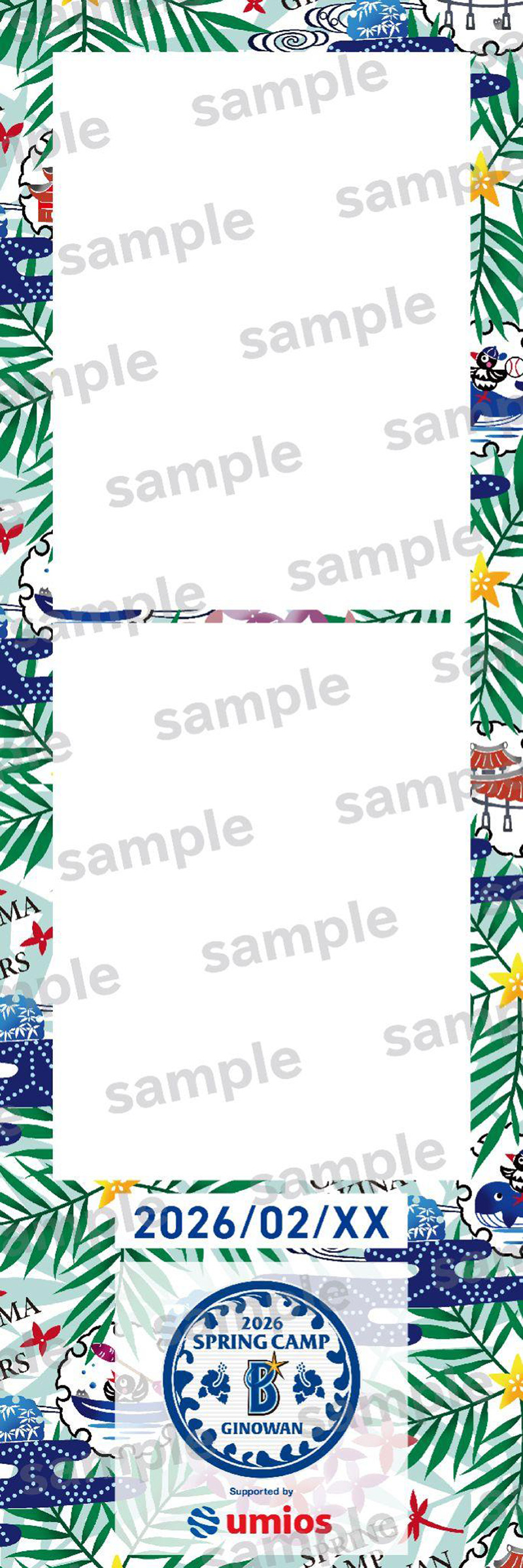2月1日(日)〜2月19日(木)の期間、一軍キャンプ地である宜野湾にてフォトブースを設置いたします。沖縄伝統の紅型(びんがた)をあしらったフォトフレームや選手・マスコットと一緒に写真が撮影できるフォトフレームで、キャンプの思い出を写真に残しましょう!