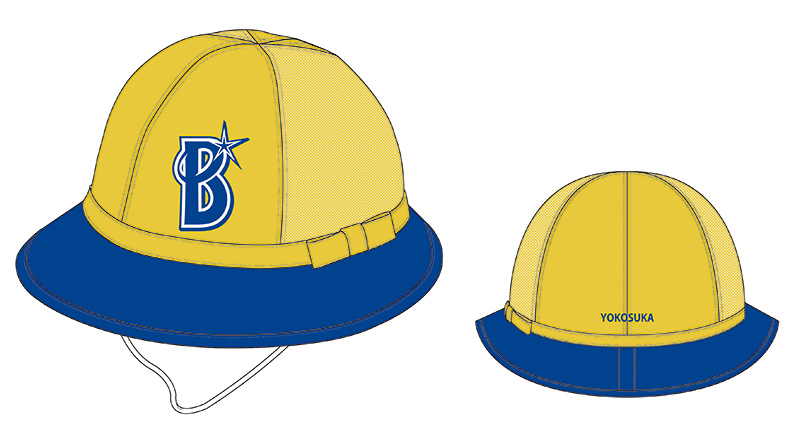 児童の安全確保に不可欠な「イエロー」をベースとしつつ、つば部分にチームカラーの「ブルー」を配色。前面には球団のシンボルである「B」マークを配置し、子どもたちの日常に馴染むスタイリッシュなデザインに仕上げました。