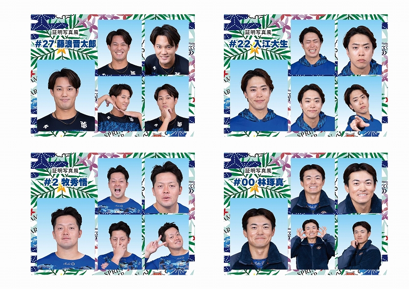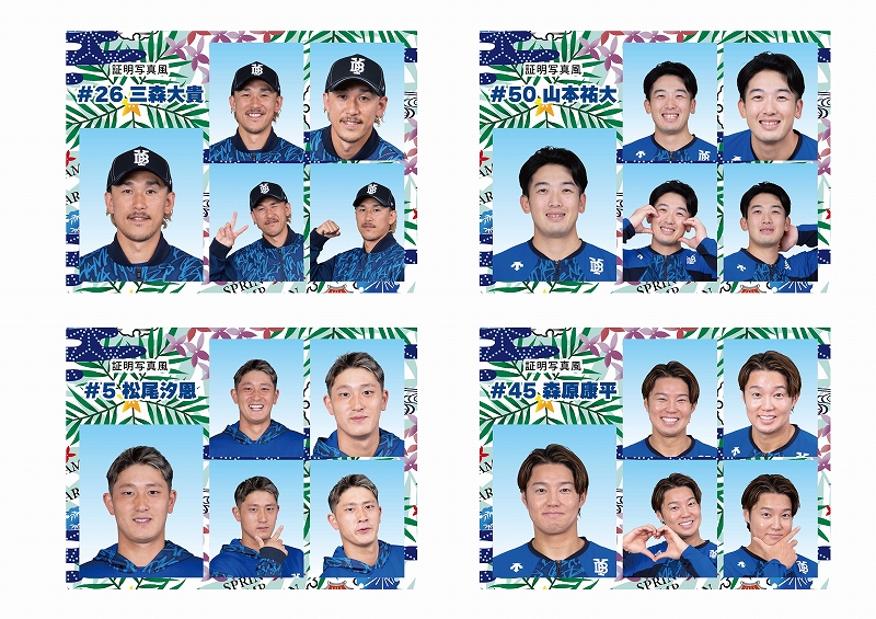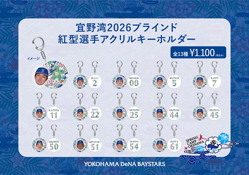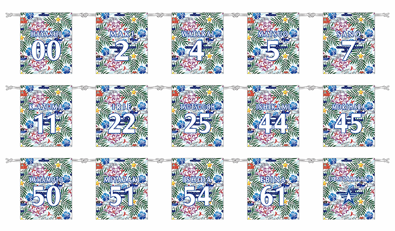 BAYSTORE GINOWANにて5,000円(税込み)お買い上げ毎に、グッズで使用している紅型を台紙にした『証明写真風ブロマイド』をプレゼントいたします。16選手とマスコット4種(DB.スターマン・DB.キララ・BART・CHAPY)の全20種ランダムとなります。選手やマスコットのなかなか見られない表情がポイント!