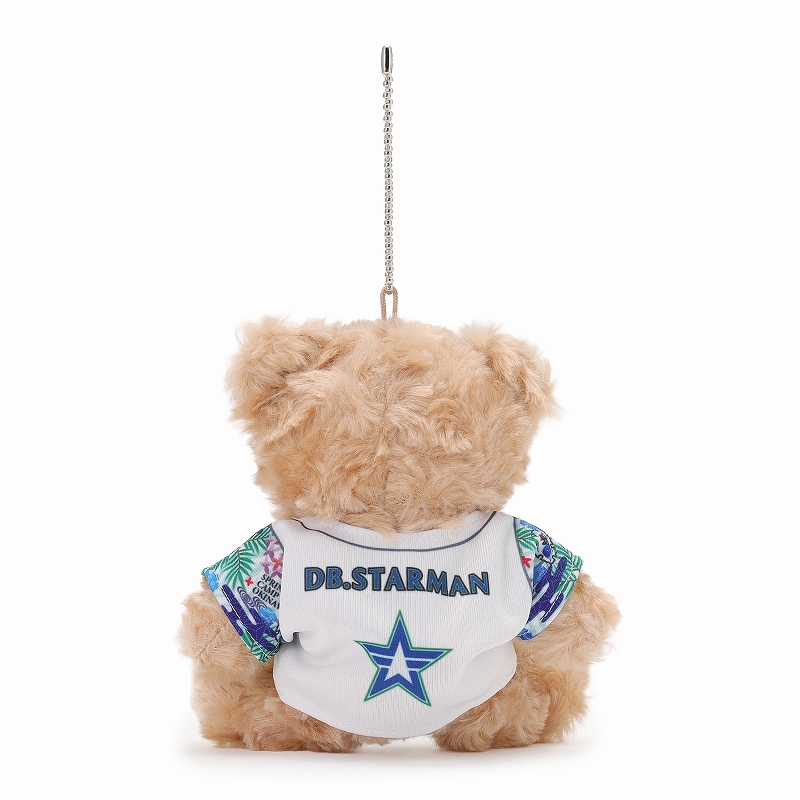 沖縄の伝統的柄「紅型」デザインの宜野湾キャンプ限定ベースボールシャツを着用したベアのマスコットキーチェーンです!