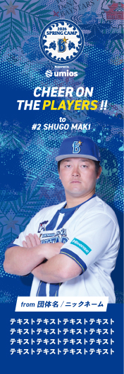 CHEER ON THE PLAYERS!は推し選手、応援したい選手の写真が掲載されたポスター/のぼりに名前とメッセージを入れることができる応援広告になります。キャンプ現地へのご来場が難しいファンの皆さまでも、選手に想いをお届けできる設計ですので、リーグ優勝ならびに日本一に向けて、ぜひこの機会に選手に想いを届けましょう!