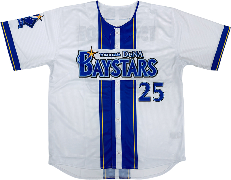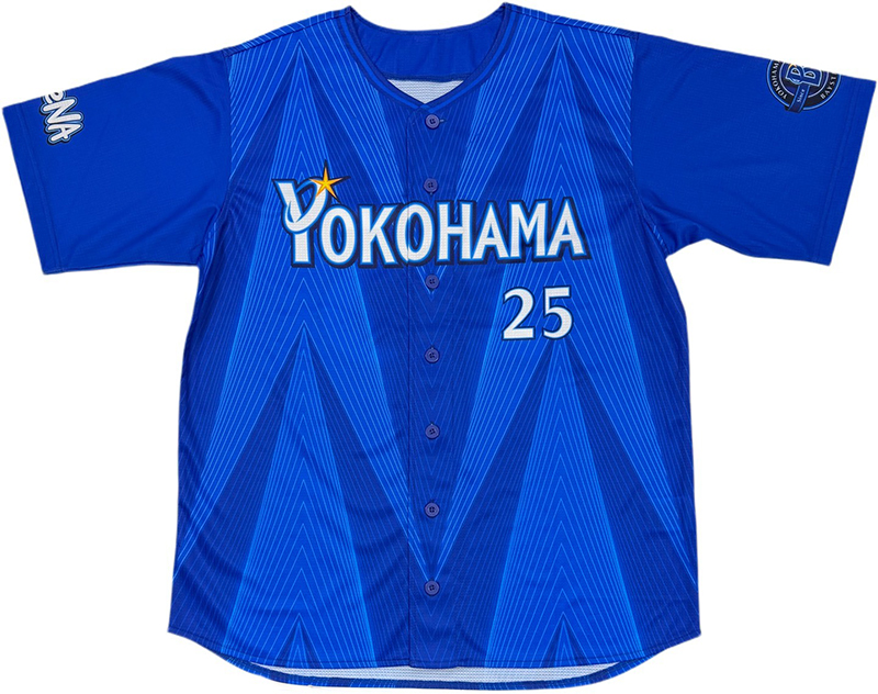 これまでのホームユニフォームに見られた「YOKOHAMA STRIPE」を継承しながらも、よりエネルギッシュに貪欲に、頂点を目指す力強さを表したデザインに! そして太いYOKOHAMA BLUEの2本のラインの左右には、イエローのラインを配置し、セ・リーグ優勝と日本一という2つの目標に向けて、誘導灯のようにチームをいざないます |