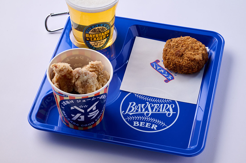 ハマスタ名物「ベイカラ(チーズ)」とジューシーな「ベイメンチ」の揚げ物2種に、球団オリジナル醸造ビール「ベイスターズ・ラガー」を合わせた、ビール好きのための最強おつまみセット。 付属の「オリジナルトレー」を使えば、ドリンクとフードを片手でスマートに持ち運べ、自席での観戦がよりスムーズになります。