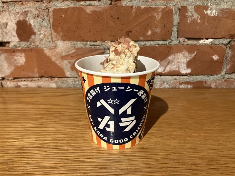 | 説 明 | 2度揚げ製法だからこそのこの食感!外はカリッと中はジューシーな「ベイカラ」。爽やかなレモンタルタルに、縁起物と言われるカツオ節を加えた「ベイカラ 勝男レモンタルタル」が新登場! |