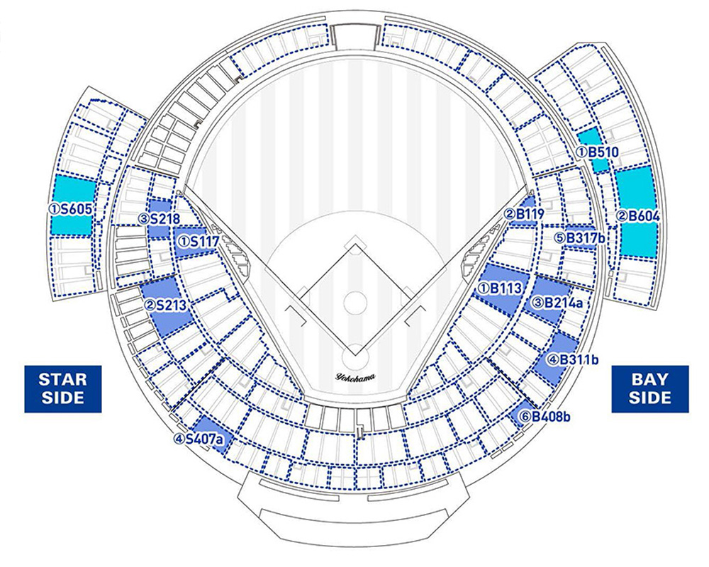 ウィング席 【BAY SIDE】 ①B510 ②B604 【STAR SIDE】 ①S605 |
