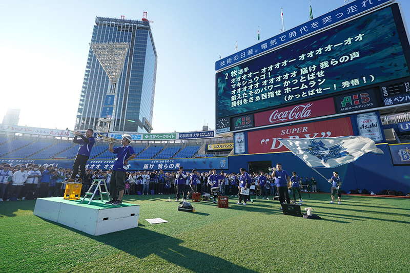 選手の応援歌やチャンステーマ、今シーズンより新たに応援レパートリーに加わる曲目等の練習を試合終了後(※)の横浜スタジアム外野グラウンドにて行います。