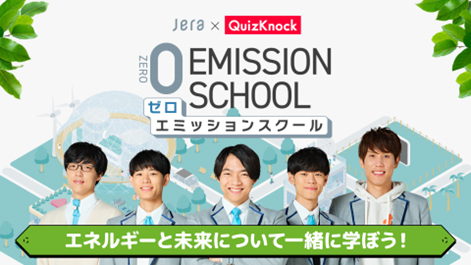 JERAは、QuizKnockを運営する株式会社batonと共に、中高生を主対象としたエネルギー情報発信プロジェクト「ゼロエミッションスクール」を展開。特設サイトで学べる動画・クイズや、学校関係者との対面型ワークショップなど、次世代教育の取り組みを多角的に展開している。