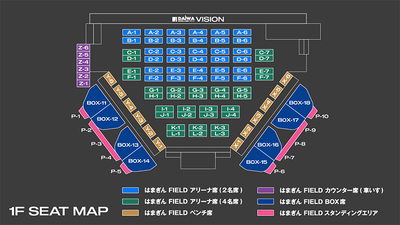 なお、立ち見には座席のご用意がありませんが、当日座席当選者がご来場されない場合は、はまぎん FIELD スタンディングエリア P-1の番号をお持ちの方から番号順に優先的にお座席にご案内いたします(はまぎん FIELD スタンディングエリア P-1〜P-10の順番となります)