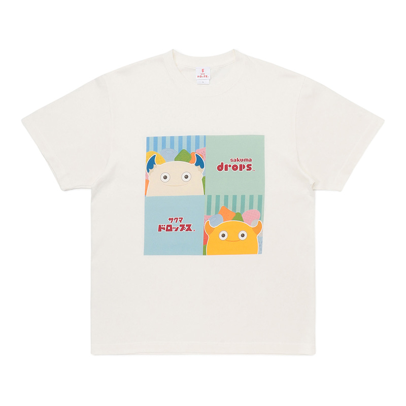 またこのコラボレーションを記念して、第1弾としてサクマドロップス缶のデザインを使ったTシャツやハンドタオルなどのアイテムも販売いたします!