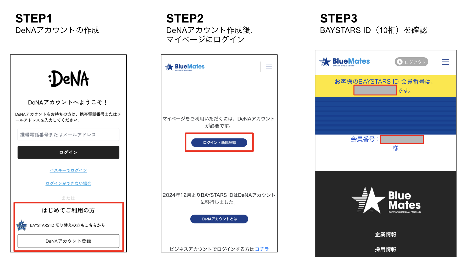 STEP3 BAYSTARS ID(10桁)を確認