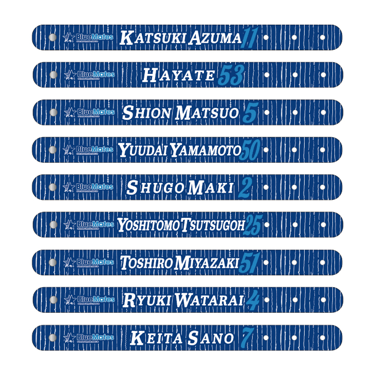 BlueMatesユニフォームデザインのリストバンドが登場!背番号と選手名が印字されたクールなデザインとなっています!
