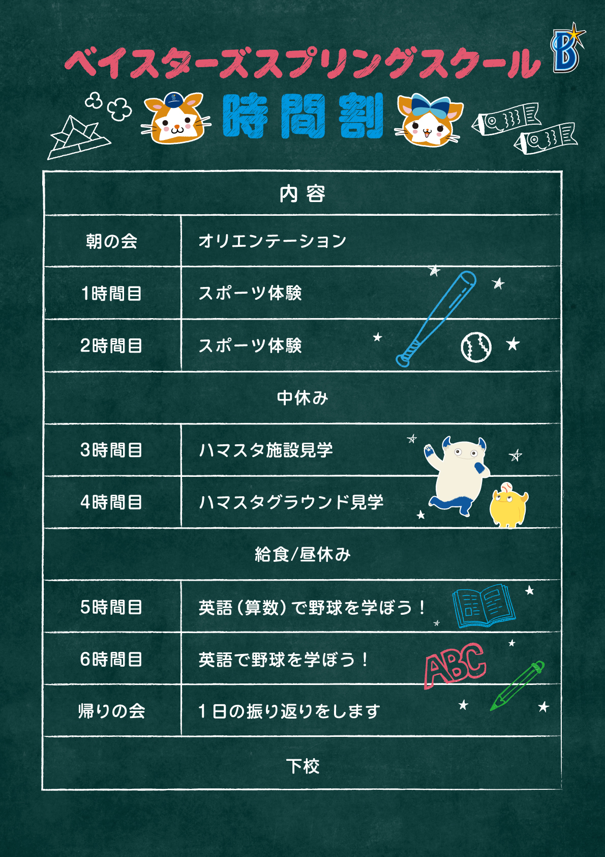 | イベント名 | 『ハマスタに登校!ベイスターズ スプリングスクール2026』 | |