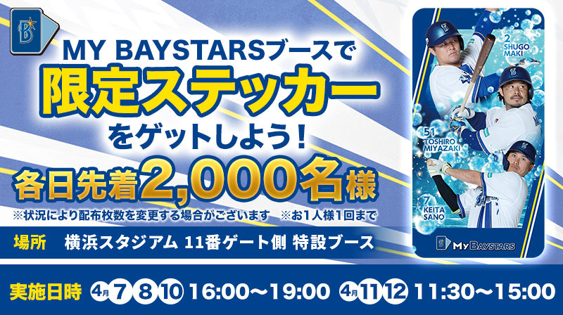 2026/4/54月7日(火)~4月12日(日)のホーム戦開催日に、横浜スタジアムにて「MY BAYSTARS」のブースイベントを開催いたします!